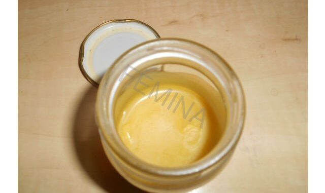 Smesu je neophodno stalno mešati do potpunog rastvaranja voska. Kad smesa postane homogena kapnite je na površinu stola i ohladiti. Mast je spremna, ako ima konzistenciju kreme.