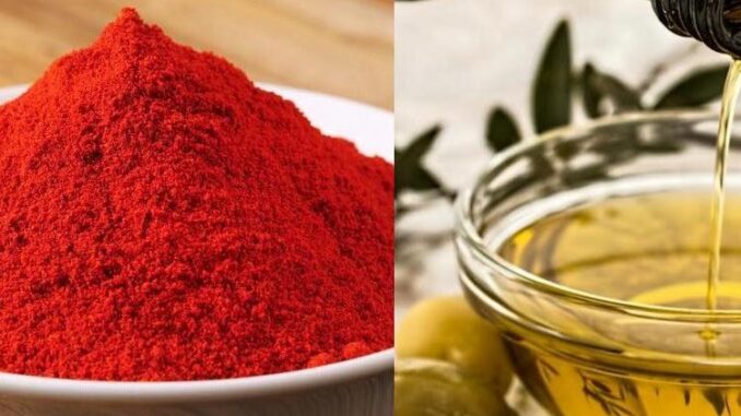 Pomiješajte crvenu papriku i maslinovo ulje. Nanesite na bolne zglobove i ostavite da stoji 15 minuta. Isperite toplom vodom.