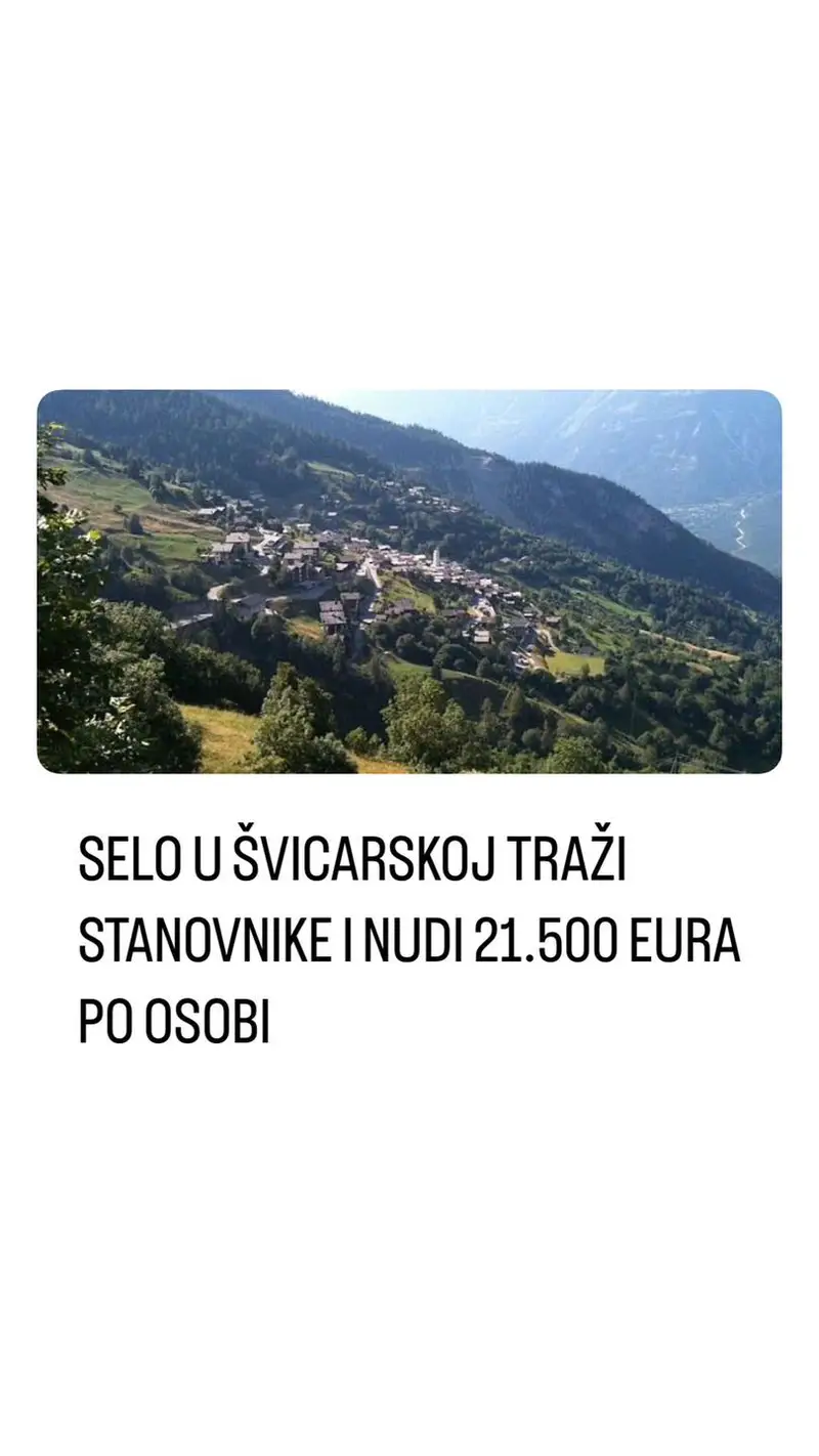 SELO U ŠVICARSKOJ TRAŽI STANOVNIKE I NUDI 21.500 EURA PO OSOBI