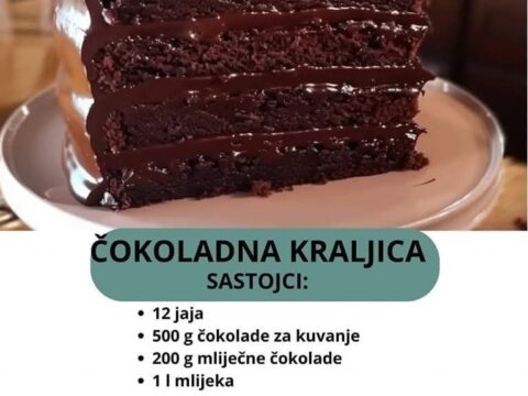 Ova torta je prava poslastica za sve koji vole čokoladu – puna, vlažna, intenzivnog ukusa i idealna za posebne prilike! Sastojci: Za biskvit:– 200 g…