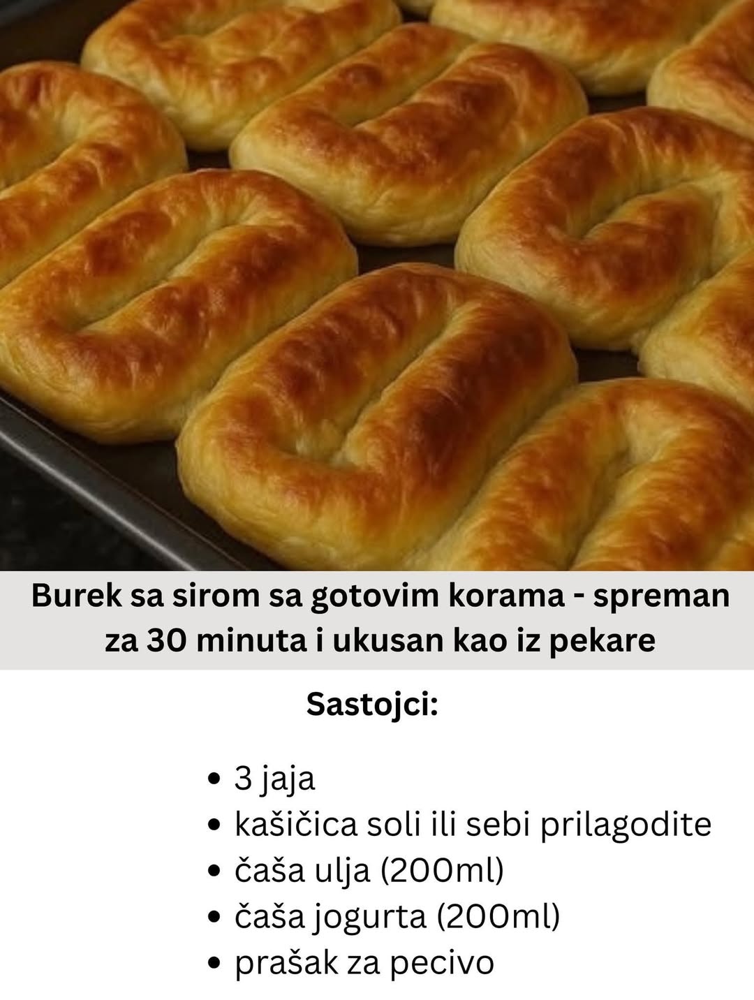 Brz i domaći recept – hrskave kore, kremasti sir i savršen miris domaće pite za samo pola sata! Idealno za doručak, večeru ili kada želite nešto ukusno i brzo. Sastojci: 500 g kora za baklavu 500 […]