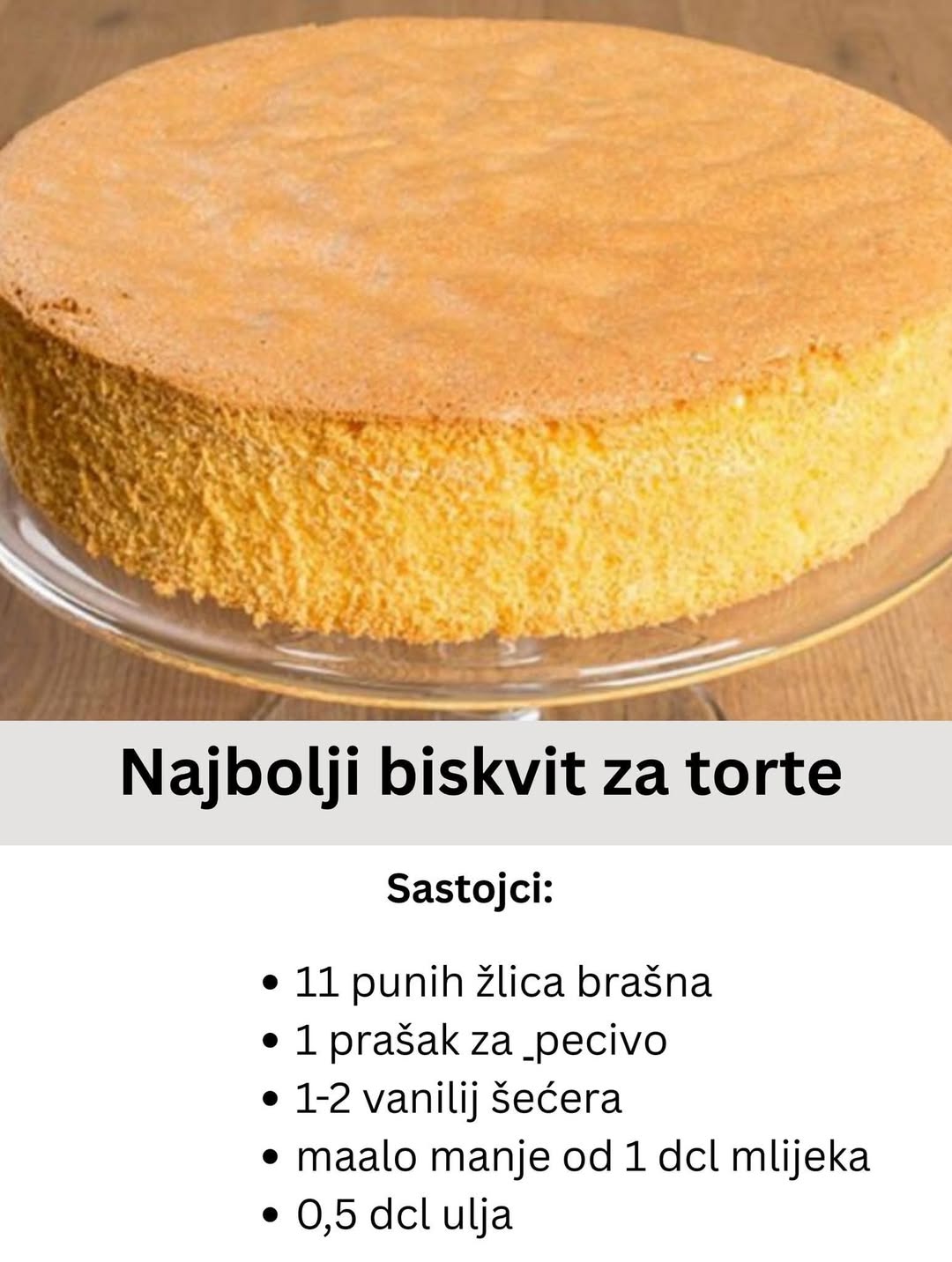 8 jaja, L veličine– na svako jaje ide 3 dkg šećera, znači za 8 jaja, 24 dkg– 11 punih žlica brašna– 1 prašak za pecivo– 1-2 vanilij šećera– maalo manje od 1 dcl mlijeka– 0,5 […]
