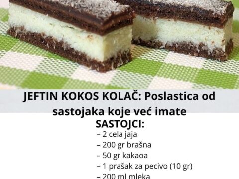 Za ljubitelje kokosa prava posalstica, a kolač se pravi od sastojaka koje već imate, veoma je ekonomičan a izdašan i ukusan. Sastojci: 2 cela jaja…