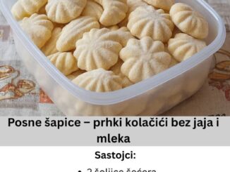 Tražiš posne kolačiće koji se brzo mese i uvek uspeju? Ove posne šapice su prhke, mirisne i tope se u ustima – idealne za post, slavlja i uz šolju kafe. Sastojci (šoljica = šoljica za […]