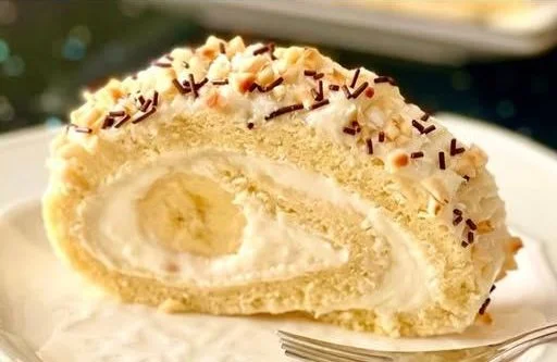 Kada se krema ohladi, dodajte šlag i umutite. Kremu nanesite na biskvit, stavite isečene banane, prelijte ostatkom kreme i po želji na površini pravite ukrase viljuškom. Tortu možete dekorisati po želji i poslužiti.