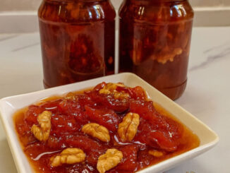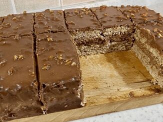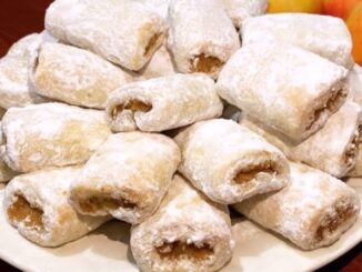 Oblatne premazane finom kremom od oraha i keksa i nadjevene bananicama. SASTOJCI: 2 oblatne 2,5 dl vode 125 g šećera 100 g maslaca 200 g Plazme Mljevene 200 g mljevenih oraha čokoladne bananice NAČIN PRIPREME: […]