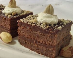 Sad dodajte i mileram. Lješnjake koje ste prethodno tostirali, sameljite i dodajte u žumanjca i čokoladu. Sve skupa još jednom kratko izmiksajte. Bjelanjke posebno istucite sa zrnom soli. Lagano dodajte u prethodnu smjesu.