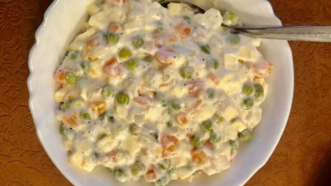 Priprema: Zamrznuto povrće sam bukvalno obarila 5 minuta u ključaloj slanoj vodi. Zatim sam ga odmah preručila u oceđivač i sačekala još 5 minuta da se dobro ocedi i ohladi. A onda sam ga preručila nazad u činiju, dodala majonez, so i biber, a onda i iseckane kisele krastavčiće i to je to.