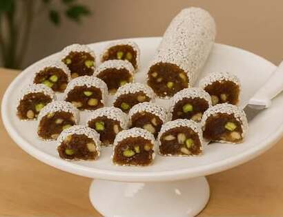 Ovaj rolat je idealan kada želite jednostavan, brz i ukusan posni desert za slavsku trpezu ili praznike. Slatke urme u kombinaciji sa susamom čine ga bogatim, a opet laganim i brzo spremnim.