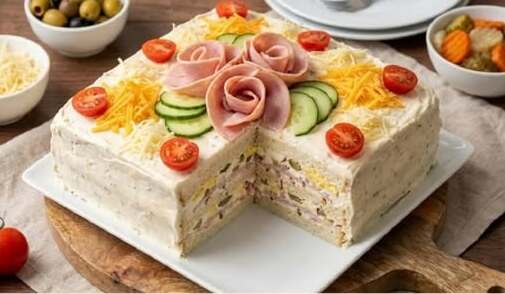 Kada se izvadi iz frižidera, slana torta se lako seče na parčad i zadržava oblik. Na preseku se jasno vide slojevi, a svaki zalogaj donosi savršen balans kremastog, slanog i osvežavajućeg. Slana torta bez pečenja je predjelo koje uvek ostavlja utisak, jer spaja jednostavnost pripreme sa bogatim ukusom i lepim izgledom. To je ona vrsta jela koja se pravi jednom, a zatim postaje stalni gost na trpezama, jer se uvek traži parče više.